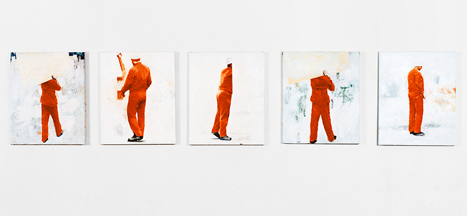 "Arbeiter", je 32 x 45 cm, Öl/Lwd., 1991