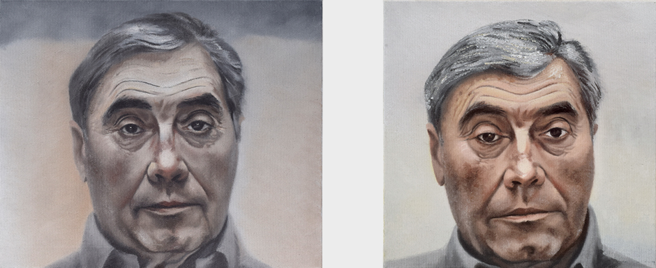 "Portraits Senioren (Castro, Merx, Fischer, Müller)", Öl/Lwd., 2014