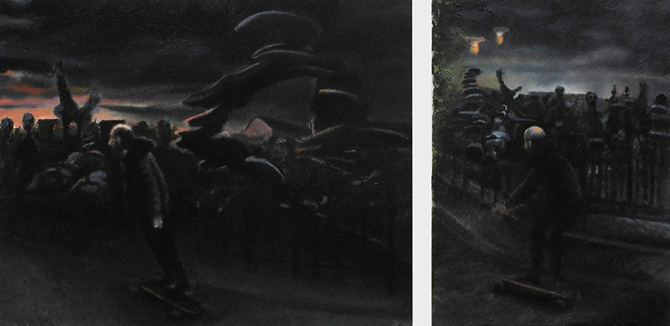 "Longboard", je 50 x 50 cm, Öl/Lwd., 2017