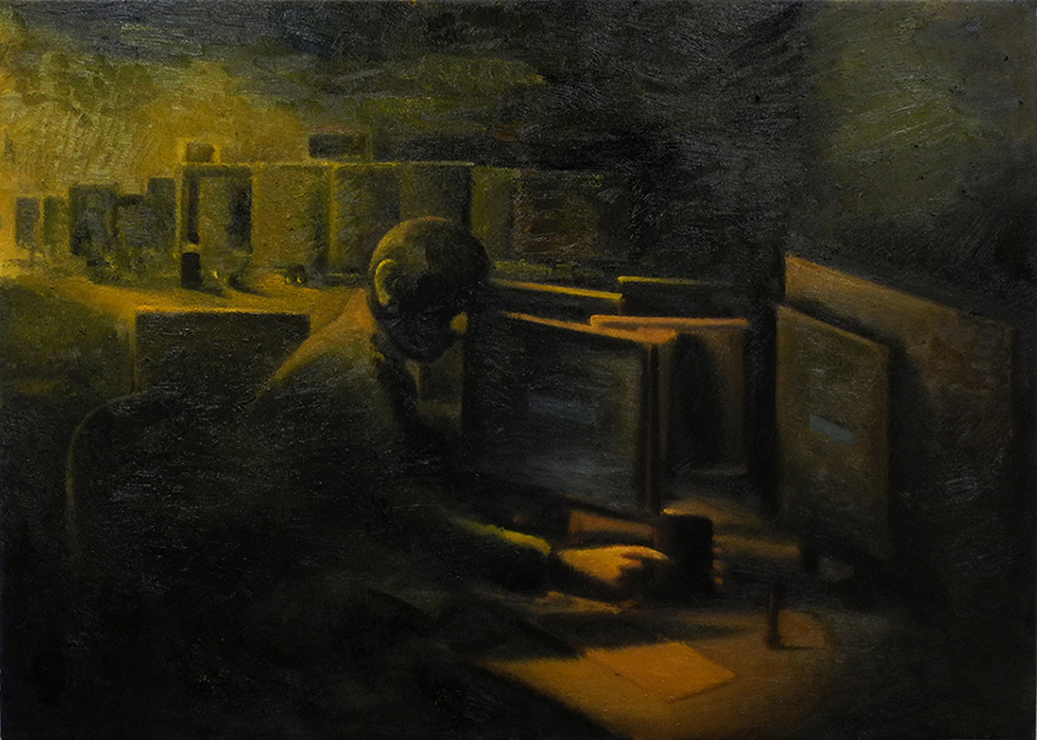 "Grossraumbüro", 50 x 80 cm, Öl/Lwd., 2017